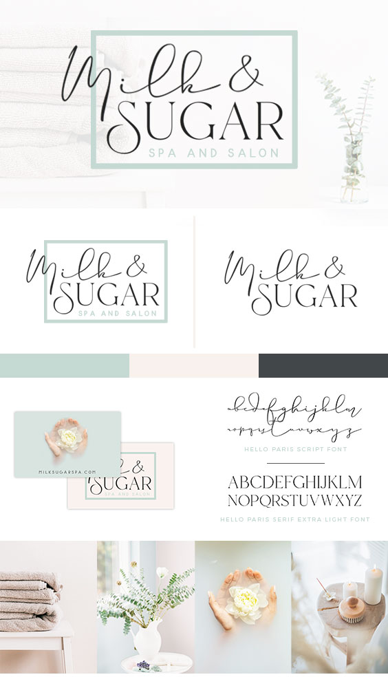 Prototype and Branding sheet for Milk and Sugar Spa and Salon.